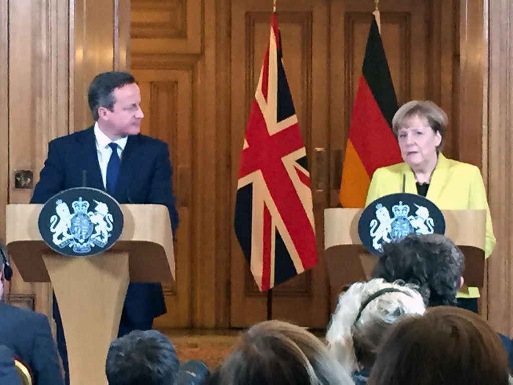 The German chancellor was fiercely opposed to David Cameron's idea of an "emergency brake" that could be applied to EU migrants in order to curb the amount of people coming into Britain. So safe to say when he floated the idea, she was less than impressed. He ditched the plan after meeting with her.