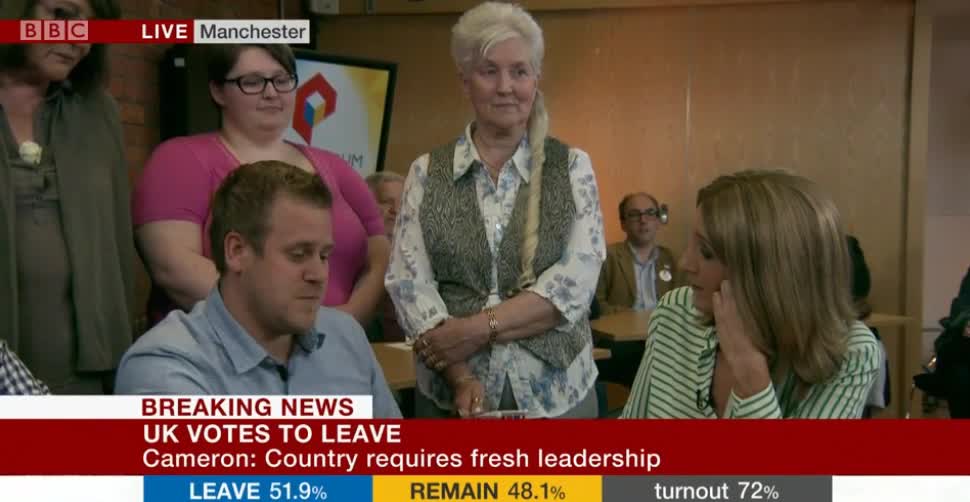 In a segment during the BBC's rolling coverage of events, Adam was introduced as a Leave voter and asked for his reaction.