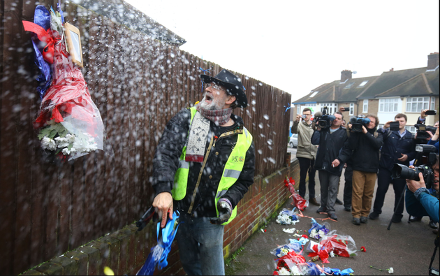 After he left the scene, the Evening Standard reported that a second man removed another bouquet.
